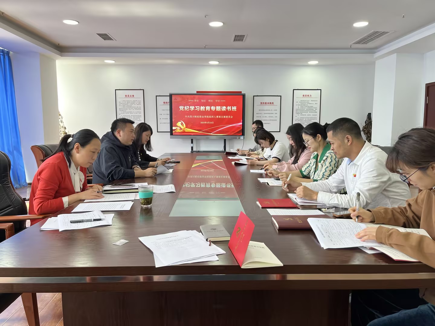 4月19日,对外合作处党支部在明德楼805会议室召开党纪学习教育启动部署会,支部全体党员参加,会议由支部书记付纬航主持。会上,支部副书记毛耘首先传达了中共中央办公厅《关于在全党开展党纪学习教育的通知》精神,就《中共四川财经职业学院委员会关于在全校开展党纪学习教育的工作方案》进行了详...