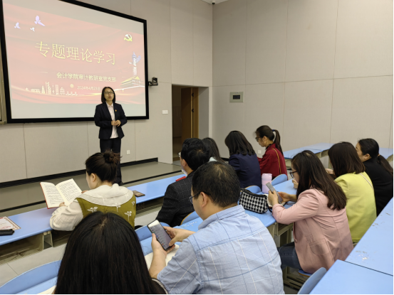 为持续加强党的理论知识学习,不断提高党员老师们的政治理论修养,落实党纪学习教育工作要求,2024年4月23日在明德楼613会议室,会计教研室党支部开展了党支部专题学习大会。会议由会计教研室党支部书记岳秀敏主持,会计教研室党支部全体党员教师参加。会上,支部书记岳秀敏同志向全体党员老师传达...