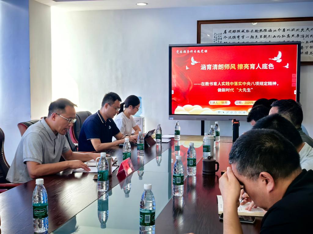 2025年6月27日下午,在明德楼912会议室,党政办公室党支部书记张倩以《筑牢作风根基 永葆初心本色——中央八项规定精神的历史传承与实践启示》为题,讲授专题党课。党政办公室党支部全体党员同志参加。张倩书记以“党的作风建设”为切入口,系统讲解了作风建设的精神内核,强调...