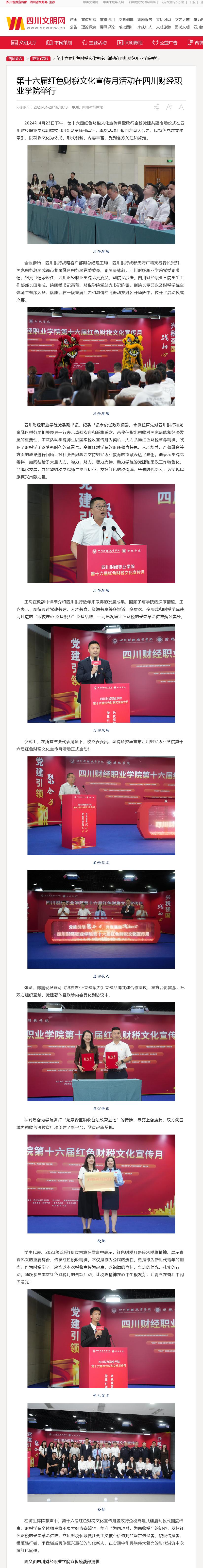 2024年4月23日下午,第十六届红色财税文化宣传月暨政行企校党建共建启动仪式在四川财经职业学院明德楼308会议室顺利举行。本次活动汇聚四方育人合力,以特色党建共建牵引,以税收文化为依托,形式创新、内容丰富,受到各方关注和肯定。