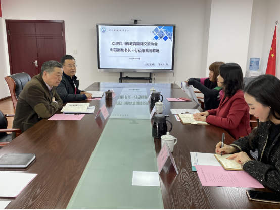 4月8日,四川省教育国际交流协会副秘书长谢蓉一行来我院开展调研交流,就进一步推进会员单位教育国际交流与合作,深入了解需求,听取意见和建议。学院党委委员、副院长易思飞,对外合作处处长叶剑明参加调研工作会。