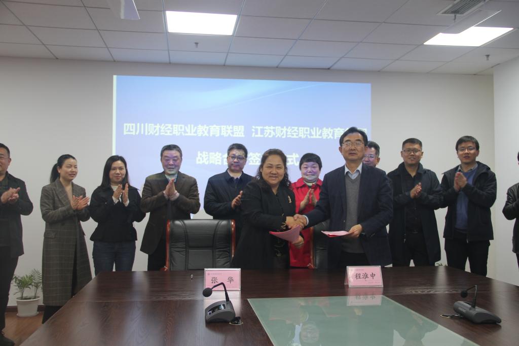 会上,两校举行了职教联盟战略合作签约仪式。张华书记与程淮中校长分别代表四川财经职业教育联盟、江苏财经职业教育集团签订了战略合作协议进一步深化了两校在共建战略平台、强化人才培养、构建现代财经职业教育培训体系、探讨校企合作新模式、共建教学实践基地、发挥双方社会服务功能等方面的合作与交流,为两校共同绘就“十四五”美好蓝图,开创高质量发展新征程奠定了基础。