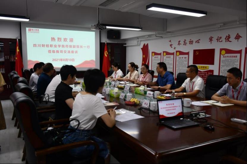 在参观普林新办公环境和观看普林企业宣传片后,符刚副院长一行与岳凡宋董事长等专家进行了深入交流。岳凡宋董事长详细介绍了普林集团近年来业务发展情况,以及在职业教育、社会培训等方面实施的重点项目情况,对与学院持续深化合作表示积极关注和大力支持。符刚副院长感谢普林集团及岳凡宋董事长长期以来对财院的大力支持和帮助,这次来到普林集团新的办公区参观学习,深深感受到普林特有的文化、抢抓机遇干大事的气魄,对普林近年来快速高质量发展深感钦佩。普林集团深耕财税专业领域多年,积累了雄厚的业务实力,下一步期待与普林集团在师资共建、教材共编、学生共育、培训共担等多方面密切合作,深入推进产教学研融合,为四川财经技能人才培养谱写新篇章。罗潇副院长就近期校企合作具体事项提出了意见建议。