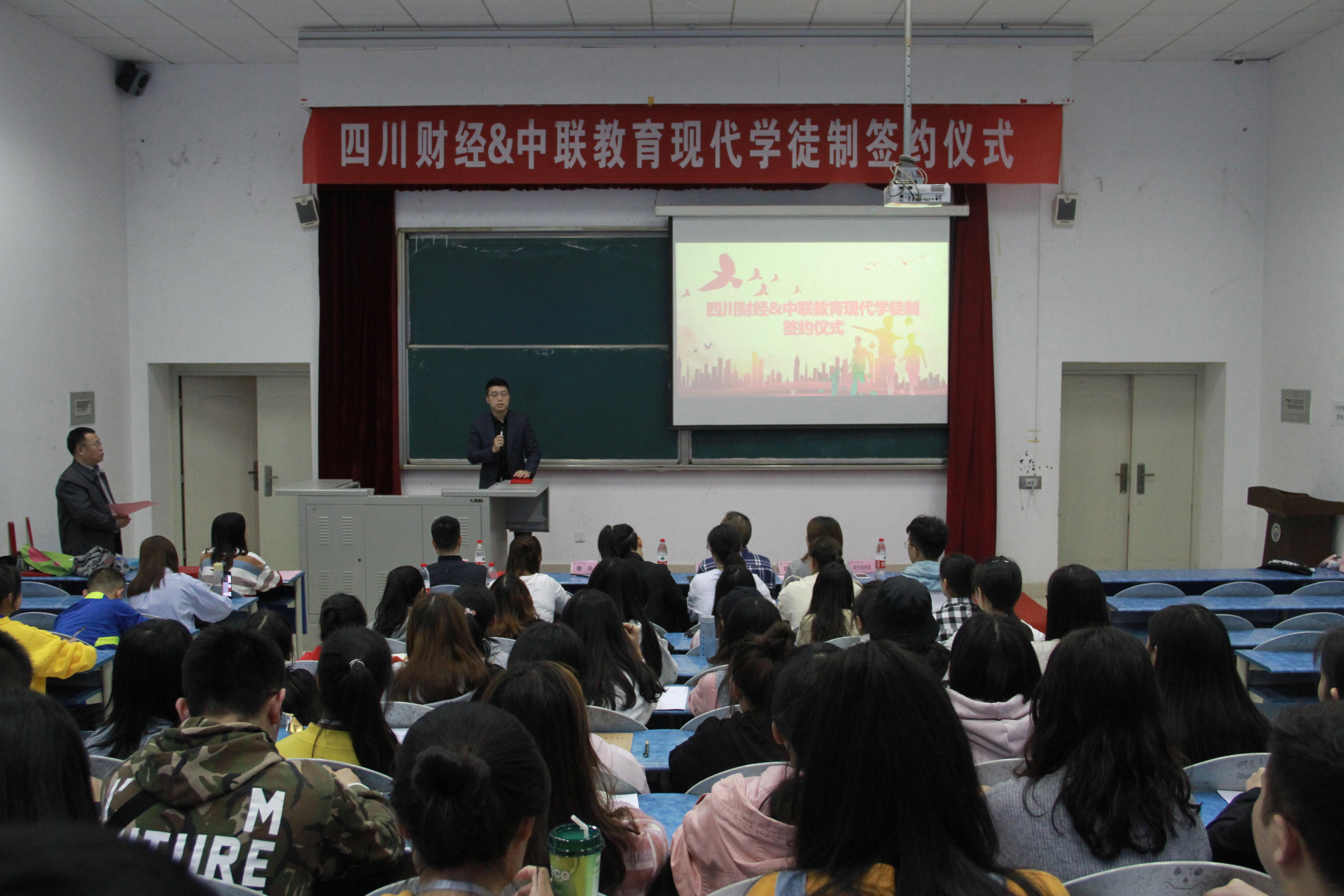 2019年10月15日下午13:30,四川财经&中联教育现代学徒制签约仪式在我院至诚楼B211阶梯教室隆重举行。中联集团教育科技有限公司四川省总监曹禹、中联资产评估集团有限公司西南分公司技术总监张广云,四川财经职业学院副院长易思飞、对外合作处处长、会计一系主任、副主任、四川财经&中联教育现代学徒制班(2019会计10班)全体学徒及辅导员出席了本次签约仪式。对外合作处处长担任主持。