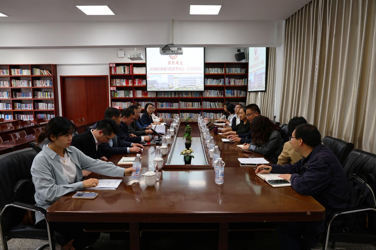 为加强中职和高职有效衔接,实现“五年一贯制”学生高质量贯通培养,4月11日,在党委书记张华带领下,四川财经职业学院一行前往成都市财贸职业高级中学校(后文简称成都财贸职中)枣子巷校区就五年一贯制学生培养开展调研并进行座谈交流。成都财贸职中党委书记汪建成,党委副书记、校长成强,专职副书记赵晓红,相关职能部门负责人及财经商贸部老师陪同。我院随同参加座谈交流的有组织人事部、会计学院、工商管理学院、马克思主义学院等部门和二级学院的党建及思政工作相关人员。