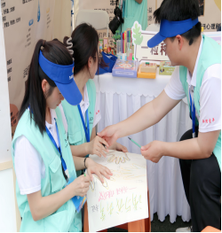 我校团委副书记、心理健康教育中心负责老师带队,阳光心理协会4名成员精心布置展示区域。通过展示丰富多彩的心理活动成果、心理健康宣传手册、心理主题海报以及有趣的心理互动游戏,吸引了众多同学的关注和参与。文化节期间,老师和社团成员们积极与其他高校交流经验,分享在心理健康教育方面的探索和实践,我校准备的“请与我击掌——我承诺我爱我”活动深受师生们喜爱和好评,我们收集到了所有参展学校的击掌,这不仅是一次我爱我的承诺,更是高校之间建立的交流合作与发展协定。