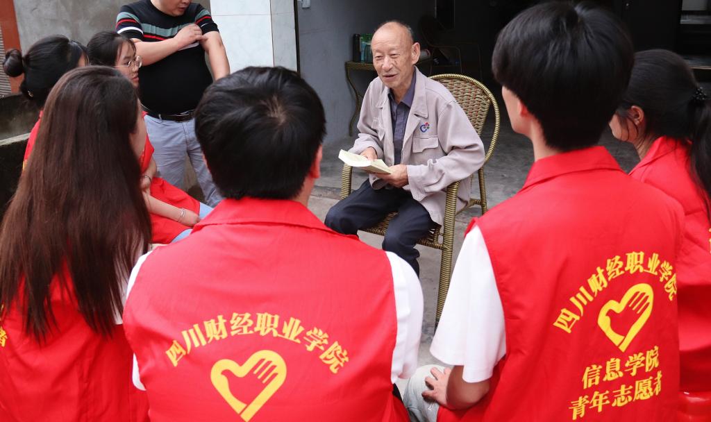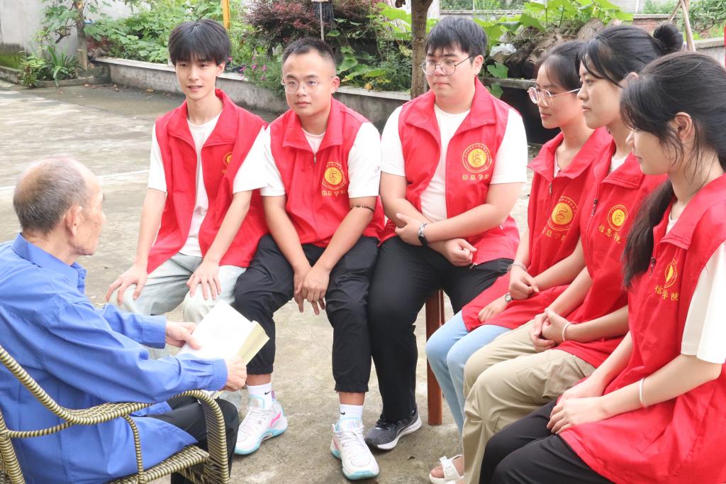 随后我们来到吴泽权爷爷家中进行拜访,吴爷爷即使年岁已高但依旧精神饱满的与志愿者们亲切交谈,回忆讲述了他往昔的工作经历:他于1966年光荣成为中共党员,一直在黄家镇深耕细作,目前已有近六十年的党龄;同时感慨了隆昌市飞速发展成为了一个集历史文化、自然景观和现代发展于一体的城市。在与他的交流中我们不仅能感受到他对党的忠诚与热爱,还能感受到他的坚定信念。入党积极分子韩宗峄向吴爷爷提问到:“您对新一代青年党员有什么期望和要求?”吴爷爷带着慈祥的笑容对我们谆谆教诲:“希望青年党员继承和发扬党的光荣传统和优良作风,无论时代如何变迁,秉持共产党员的初心和使命,要勇于担当,不畏艰难,矢志不渝的为实现中国梦奉献自己的青春与力量”。