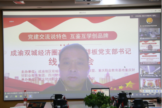 12月3日上午,由我校和重庆财经职业学院共同承办的成渝双城经济圈高职院校样板党支部书记交流会通过线上线下相结合的方式圆满举行,川渝两地部分高职院校党委书记、基层党组织书记、专家、教师等共同参加了交流会。
