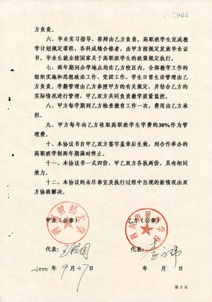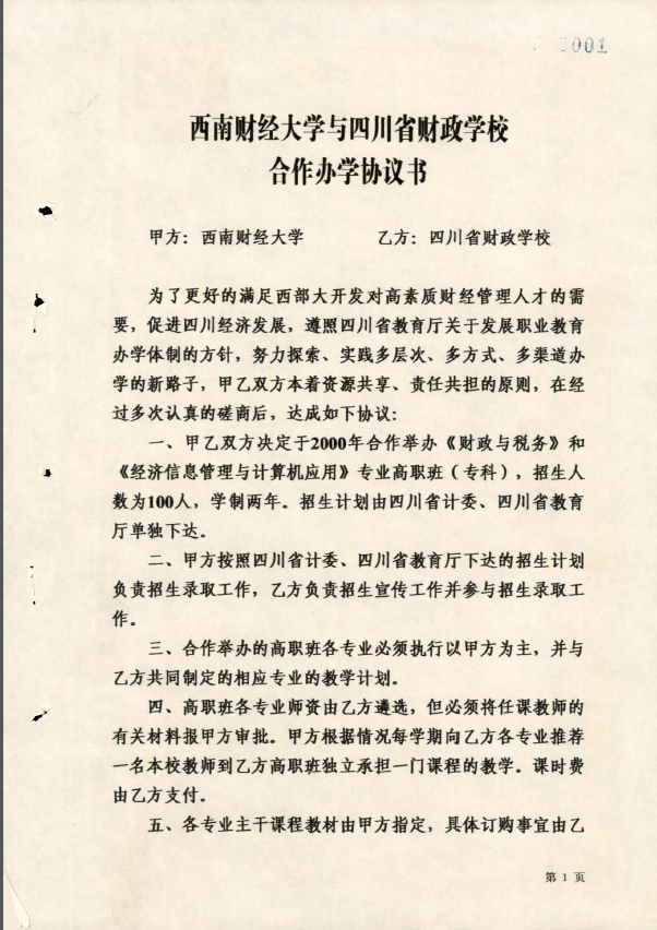 2000年学校争取到开办五年制招生的机会,与西南财大、成都信息工程学院、四川省干函院联合办班,招收普通高职、对口高职和成人高职班,2001年共招生600多名,高职生总人数达到在校生的三分之一。