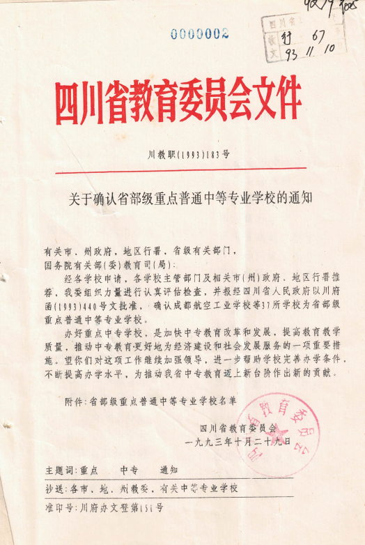 1993年被四川省人民政府批准为“省部级重点重点中等专业学校”。