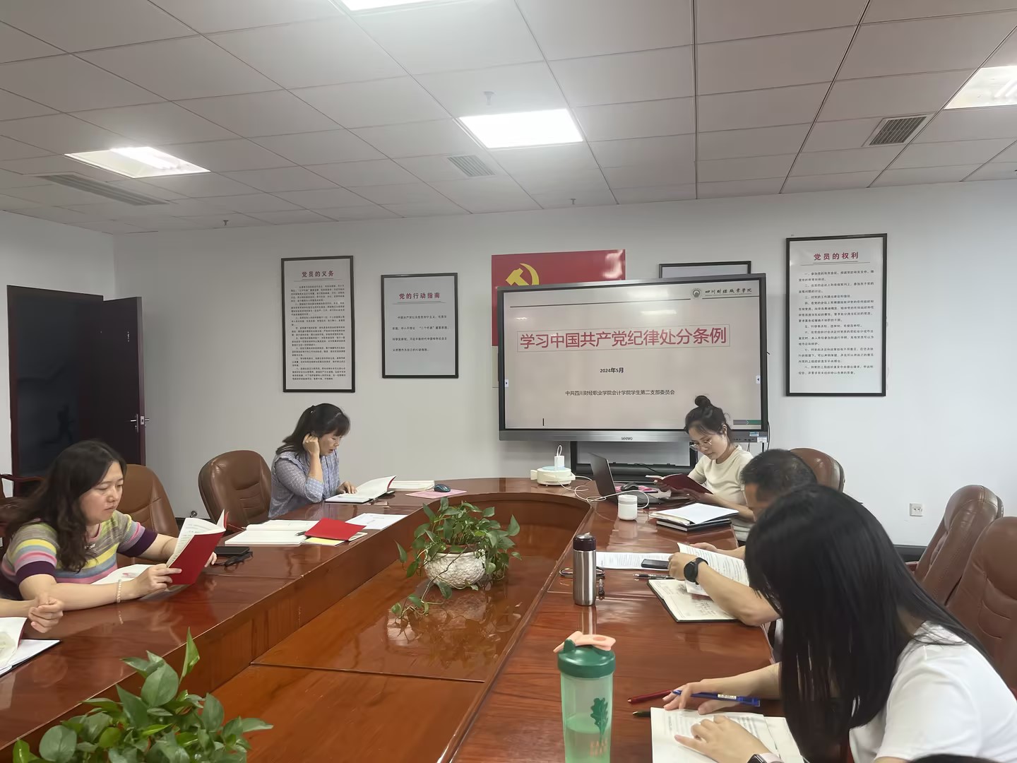 在《共产党纪律处分条例》学习中,纪检委员吴雪琴同志、组织委员曾露同志、支部党员夏显莲同志分别领学了《条例》第一到第六章,并结合修订强调了修改要点。