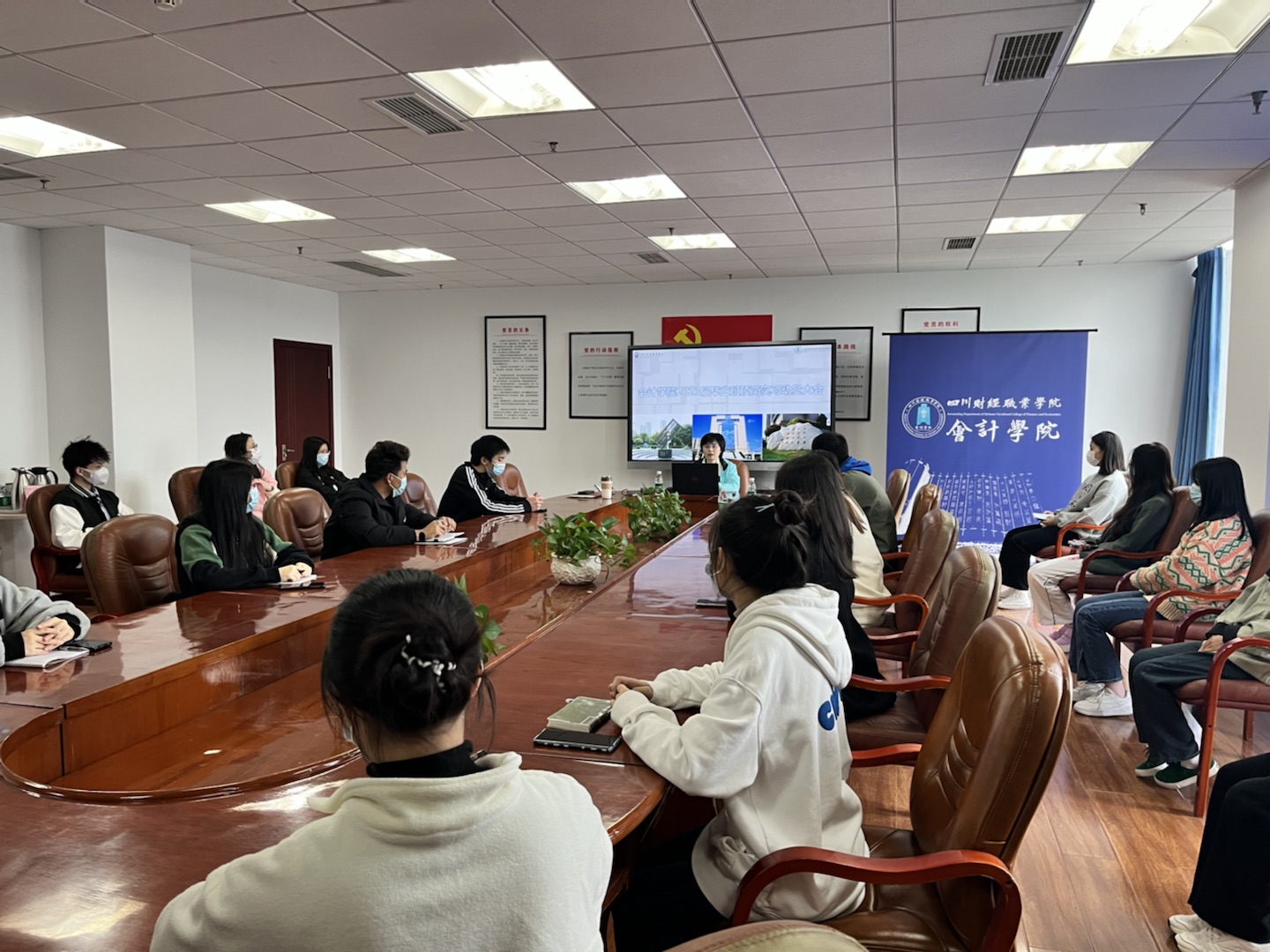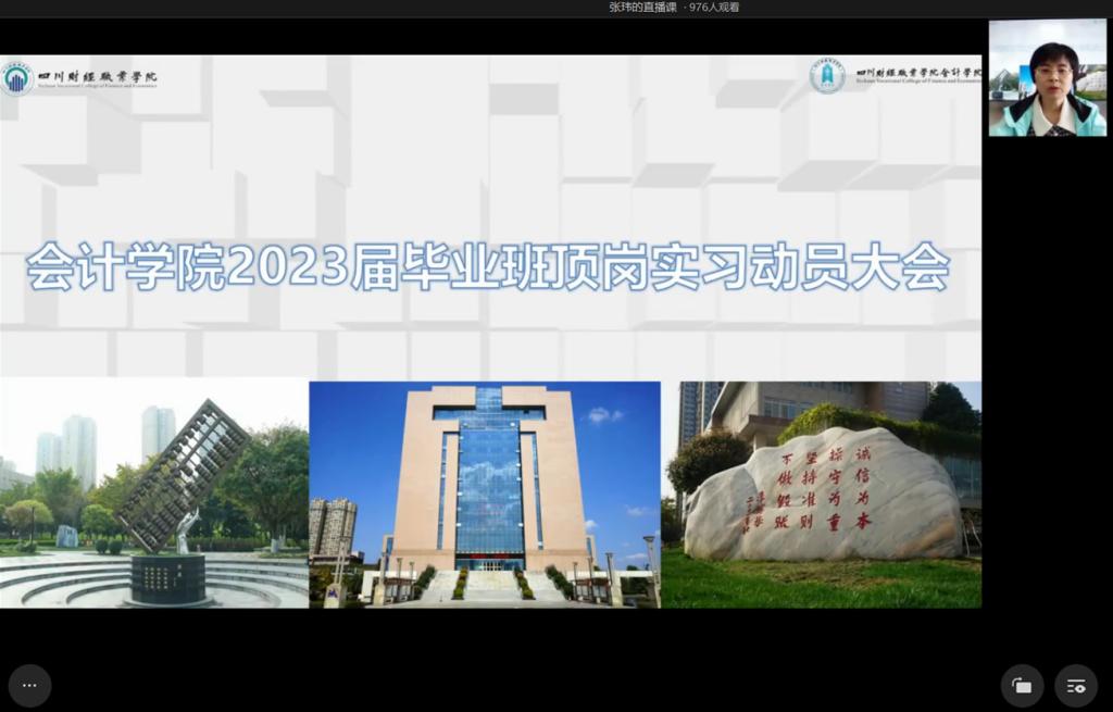 为帮助2023届毕业生认清就业形势,引导毕业生同学们做好顶岗实习前的各项准备,树立正确就业观念,明确就业目标,进一步完善毕业生实习工作,11月29日会计学院在明德楼613会议室通过直播形式召开了2023届毕业生顶岗实习动员大会。会计学院院长兼党总支书记李代俊、副院长陈娟、团总支书记张玮、各班级辅导员以及2023届各毕业班学生参加了本次会议。