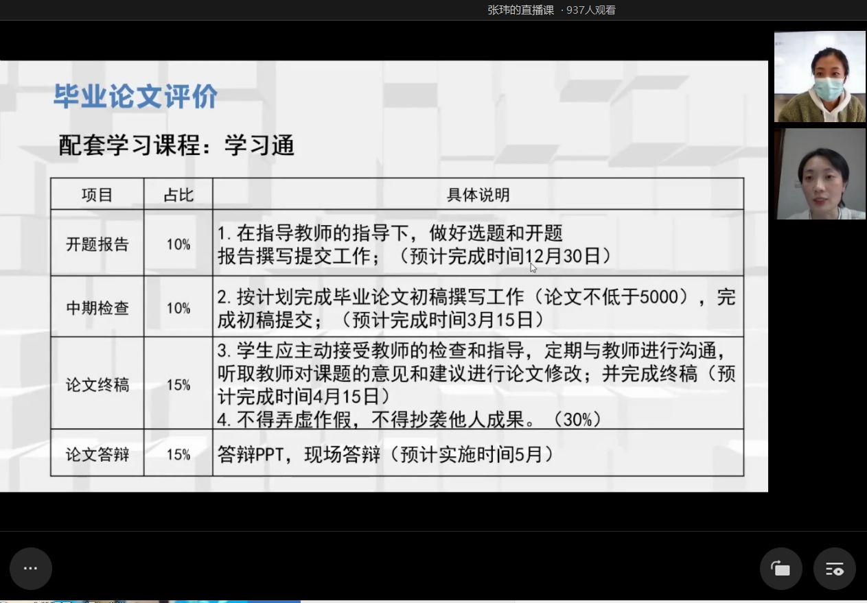 陈娟副院长就顶岗实习计划、毕业论文、实习资料提交等进行详细介绍,梳理和归纳了顶岗实习平台填报要点,对整个实习工作计划作了详细说明。并对实习单位落实、实习内容确定、实习过程管理、实习教师指导、实习平台填写、实习成绩评定等重要内容进行了安排和布置。此外陈娟院长还强调了毕业论文的重要性,要求同学们认真撰写毕业论文,学会运用所学知识观察问题,分析问题和解决问题,掌握毕业论文写作方法,加强与指导老师的沟通联系,不断提高论文质量。最后,陈娟副院长希望同学们以端正的态度对待,严格按照学校的规定保质保量完成各项毕业环节。