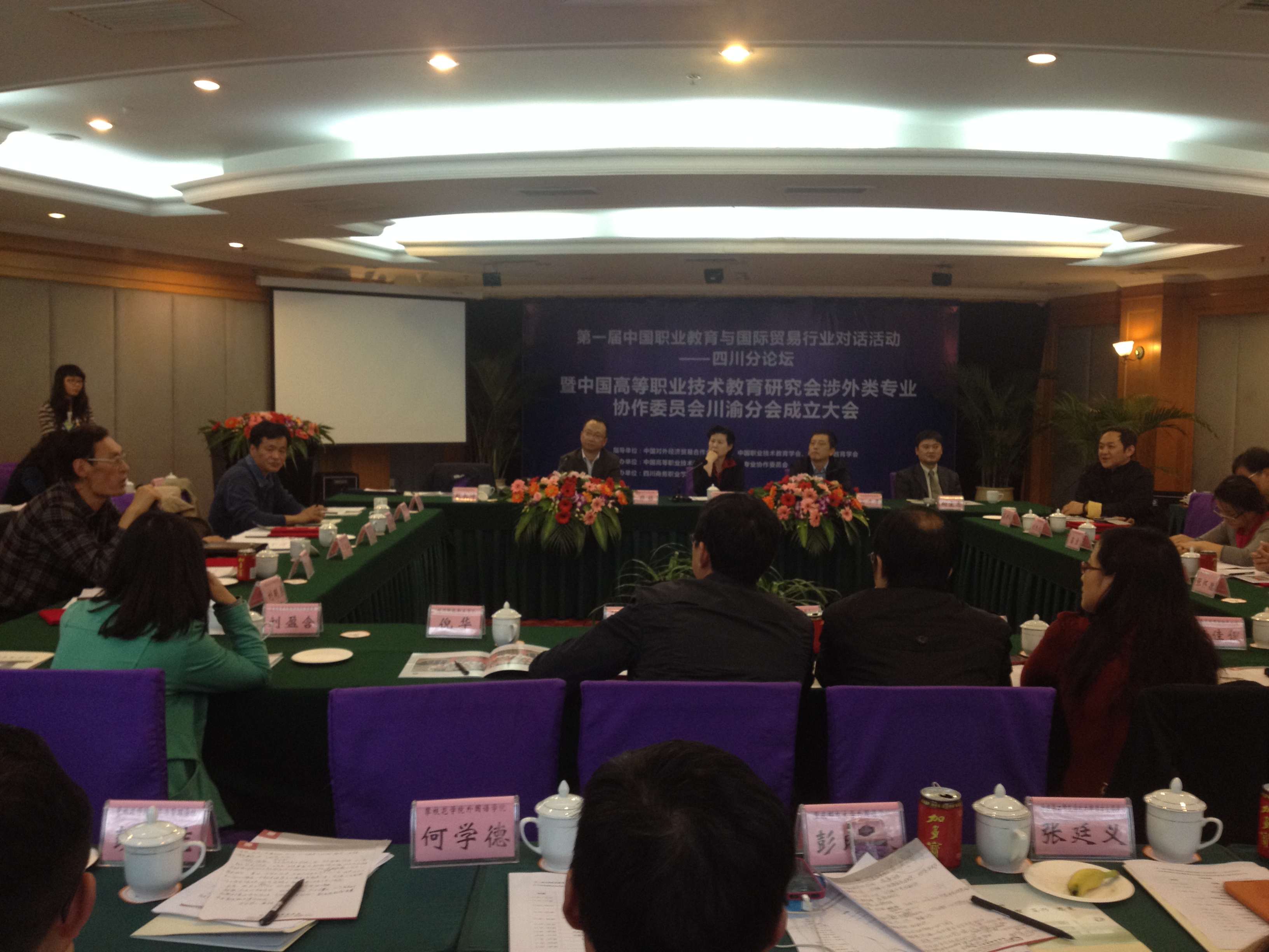 10月23日,我系会计教研室主任朱敏和教师刘婷参加了在温江举行的第一届中国职业教育与国际贸易行业对话论坛暨中国高等职业技术教育研究会涉外类专业协作委员会川渝分会成立大会。