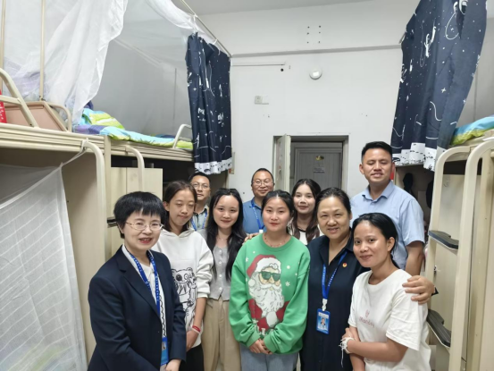 走访中,张华书记与国际学生亲切交流,询问他们到校后是否适应学校生活和饮食,是否思念家乡和家人,了解他们的学习进展、生活等情况。张华书记强调节假日外出要结伴而行,注意出行安全。勉励他们要刻苦学习,合理规划,珍惜在中国的求学时光,努力提高自身学习能力和专业素质。张华书记特别表扬了国际学生宿舍的整洁卫生,希望他们长期保持良好的宿舍环境。