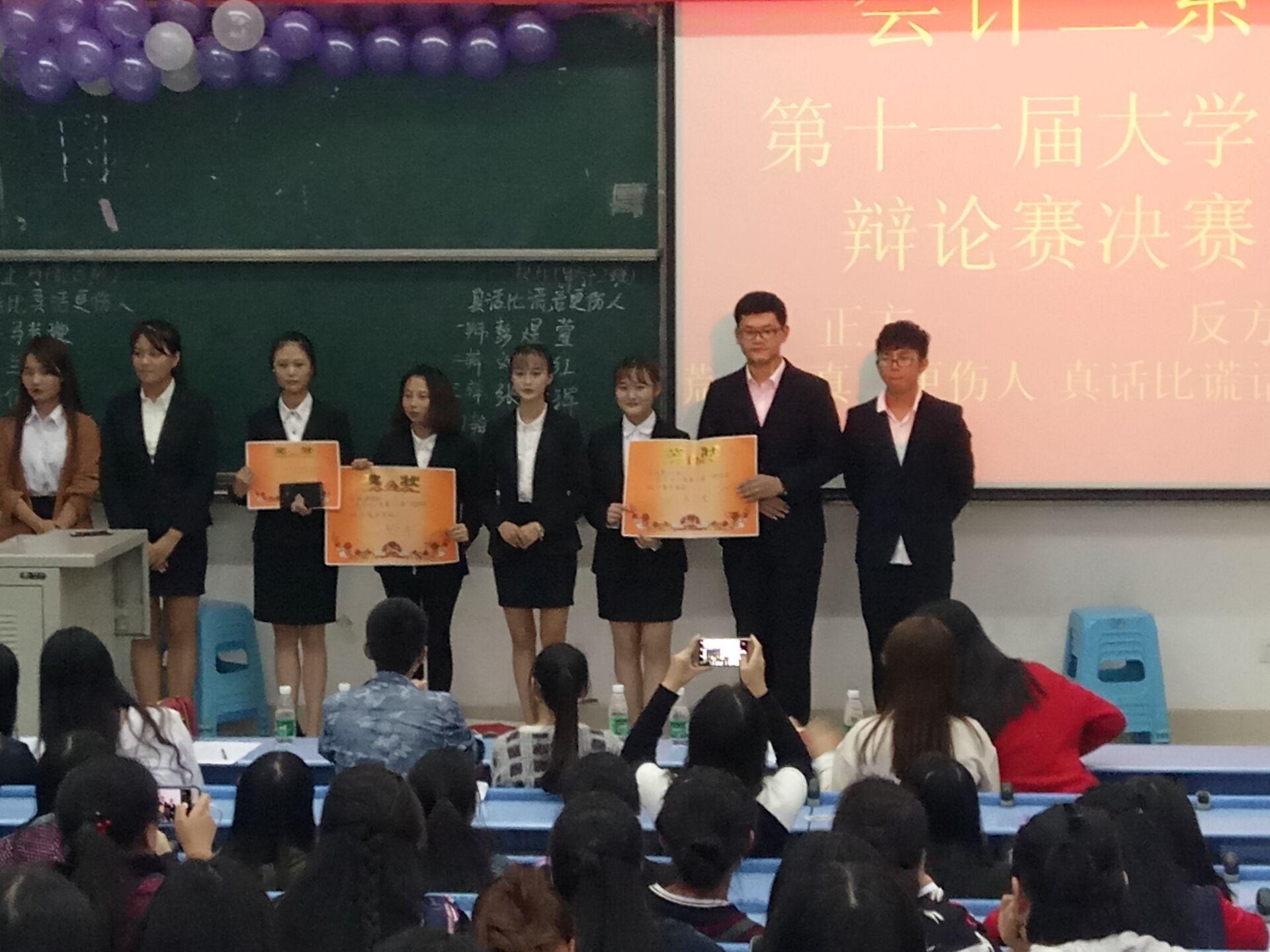 本次辩论赛正方为16级混合队,观点为:“谎话比真话更伤人”。反方为16级审计2班,观点为:“真话比谎话更伤人”。辩手们精神饱满、思维缜密、机智应变、妙语连珠。双方紧紧抓住对方陈述词的不足紧追猛打激烈交锋。在自由辩论阶段,双方你来我往、言辞犀利就辩题展开论述,火花四溅,选手的口才和应变能力在这一环节呈现得淋漓尽致,同时将比赛推向高潮。最后,评委沈柯宇对本次辩论赛做了精彩的点评,他指出了双方辩手的优点与不足。最后,反方审计二班以500分获得最终的胜利。正方二辩兰茹玉同学摘得最佳辩手的称号。