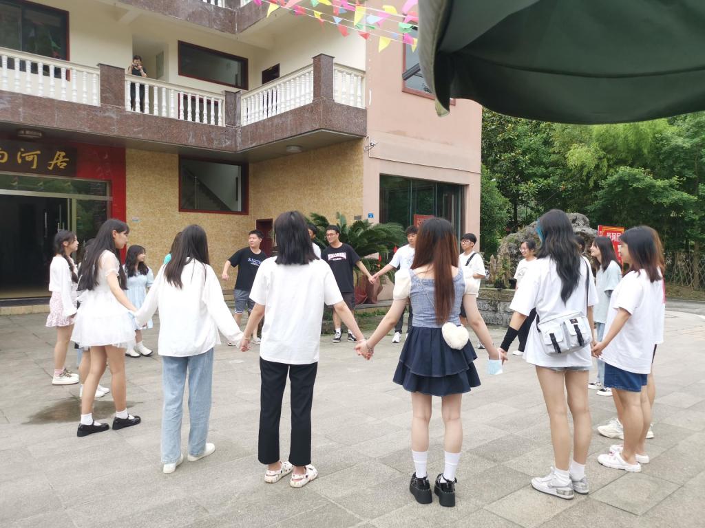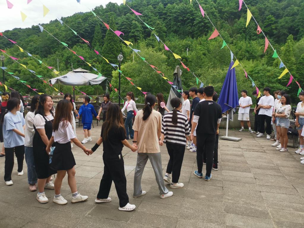 上午八点,两班同学乘坐大巴车来到本次联谊地点——白鹿小镇。同学们在导游的带领下,首先进行了“大风吹”热身游戏,同学们手拉手围成圈,消除了彼此间的陌生感,搭建起友谊的桥梁。随后,各位同学自发组织节目表演,大家其乐融融,满是欢声笑语。而后一支集体健身操进一步拉近两个班级之间的距离,同学们跟着韵律舞动,展现出朝气蓬勃的青春活力。董又维老师随后也加入其中,江春燕老师则在一旁用照片记录此时此刻的美好瞬间。两班同学的融洽相处让整个活动充满了轻松愉悦的氛围。