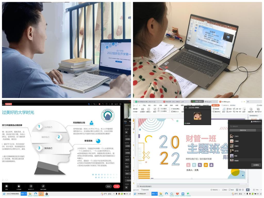 9月6日,疫情期间2022级新生不能到校报道,大家克服重重困难运用智慧校园网络技术顺利的完成了第一天入学教育。2020级辅导员王越、徐嘉励、沙琴玲、吴雪琴、曾露、王亮等分别在云端与同学进行面对面交流,对入学教育安排、学校作息制度、请销假制度、门卫制度、本期教学安排、班委竞选与学生手册答疑等部分内容进行了详细的讲解。各班班导生结合各班实际情况,创新性开展符合班级实际、贴合新生需求的破冰活动,让同学们尽快熟悉起来,为尽快推选出班级班委,组织班级活动开展打良好基础。