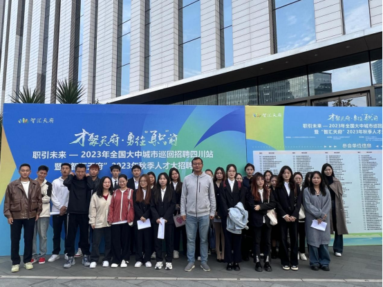 为促进高校毕业生高质量就业,职引未来—2023年全国大中城市巡回招聘四川站暨“智汇天府”2023年秋季人才大招聘活动在成都举办。2023年10月28日上午,会计学院组织2024届40名毕业生由阿别木呷老师带队参加了此次招聘活动。