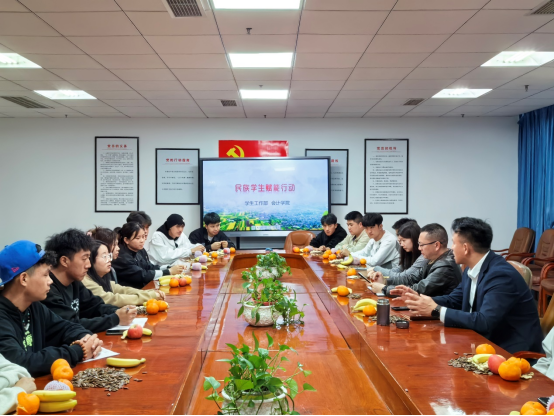 田部长在主持会议开场时,说明了本次会议的目的就是参加座谈同学们要畅所欲言、敞开心扉,把我们民族学生在学校里遇到的问题和面临的困难都提出来,学工部和会计学院都会努力地把合理的诉求落实。随后在参会同学踊跃发言,分别提出了民族学生存在的主要问题和困难:时间管理困难、自我认知不足、未来目标不明确、学习压力大、基础知识过差、班级里有“摆烂”的人、造成此类问题的是民族学生不愿意退出舒适圈,交流沟通能力过差、民族学生有的因为家境因中途选择辍学,早早回家嫁人放弃学业、有的残疾学生心里自卑自信心不足,部分学生对学习兴趣浓厚在学习方面努力、勤奋、积极向上。还有同学建议要加强阅读能力,提高交流沟通能力,利用早晚自习采取播放时事新闻、普法栏目剧,加强同学们对红色人物事迹的了解,此外民族学生多数能歌擅舞,热爱运动,动手能力强,懂礼貌尊重他人等优点,在学校开展的活动中能独当一面,并提出可以开展一些班级之间的联谊活动,多举办一些篮球赛事,通过集体活动拉近同学的关系。