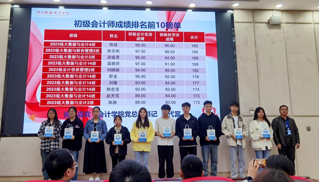 会议议程第四项,郑代富书记给初级会计师前10名会员颁奖。在今年5月举行的初级会计师考试中,协会中出现许多佼佼者,他们积极进取,勇攀高峰,取得了令人瞩目的佳绩。此次颁奖典礼不仅是对他们辛勤付出的肯定,更是激励着每一位新会员向优秀看齐。