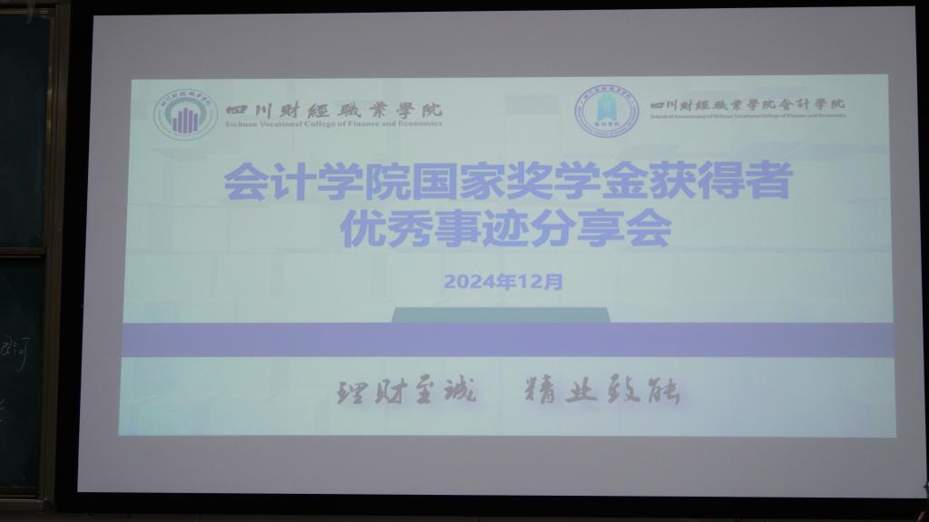 为充分展示我院优秀学子的先进事迹和精神风貌,积极发挥国家奖学金获得者榜样引领作用,营造积极进取、不懈奋斗的良好氛围,帮助同学们全面了解国家奖学金,激发学习动力。2024年12月24日会计学院在至诚楼B113举行了国家奖学金获得者优秀事迹分享会,本次活动旨在通过分享获奖者的成长故事与学习心得,为全院学生树立学习典范,激发大家的奋斗热情。