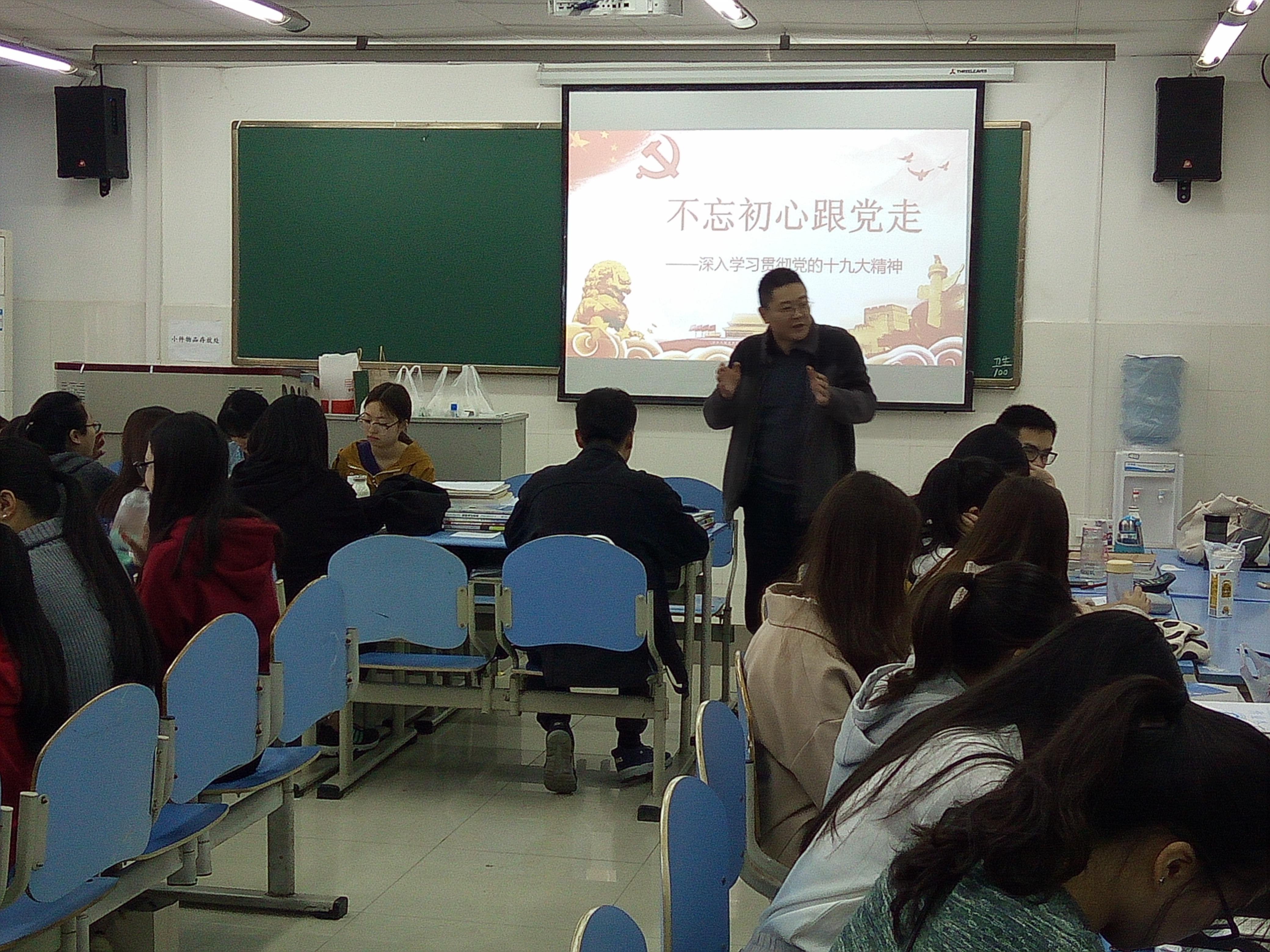 为让同学们深入学习、领会十九大精神,2017年11月3日上午9点,2016级财管2班在C104教室开展了以“学习十九大,不忘初心跟党走”的主题班会。此次班会由辅导员吴雪琴老师主持,会计二系党总支书记刘波同志作为联系班级的学院干部详细宣讲了十九大精神。