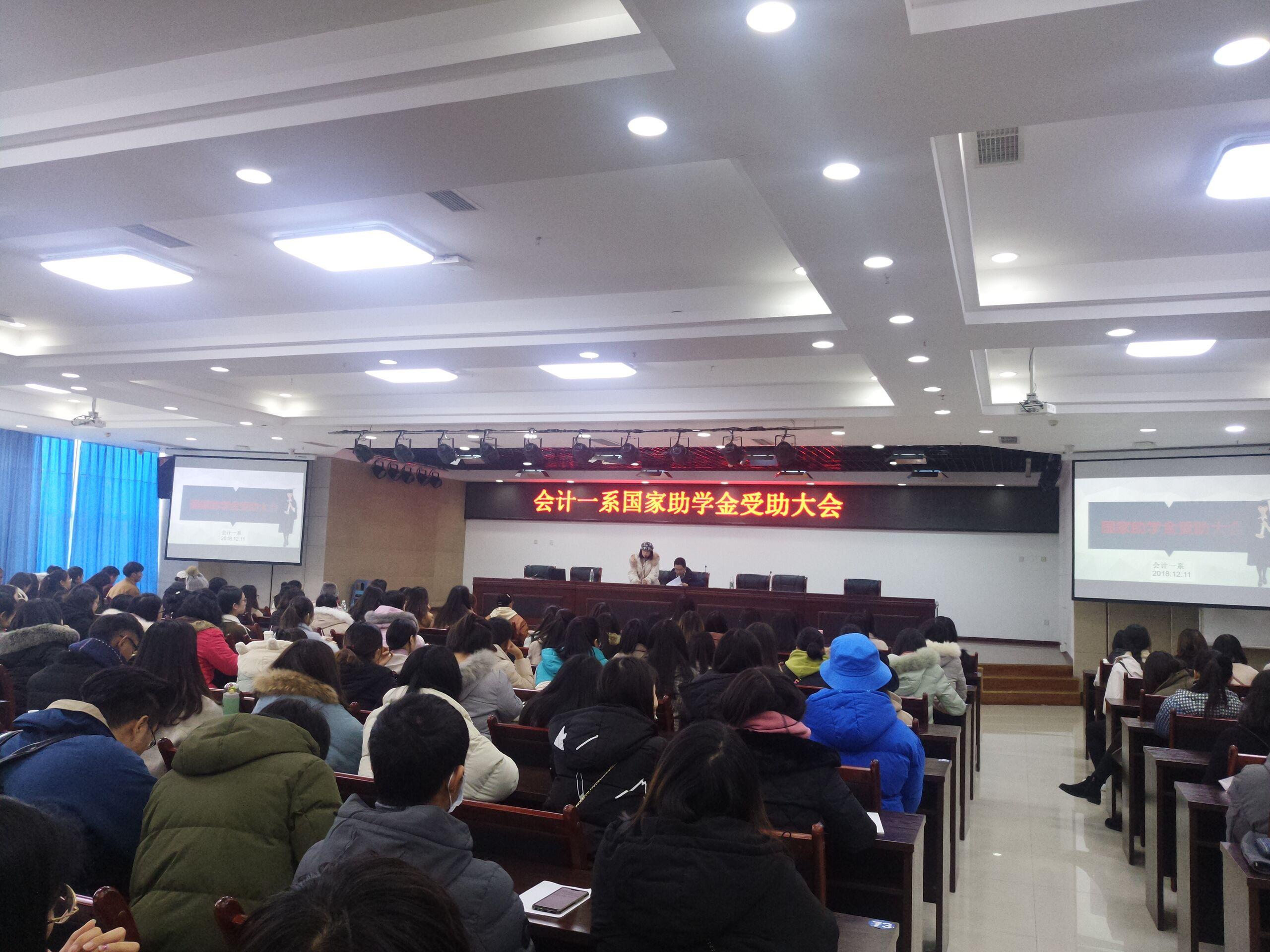 2018年12月11日,我系举办了国家助学金受助大会,大会由会计一系奖助贷评审小组成员龚雪瑶主持。出席会议的有会计一系党支部书记刘丹,学生党支部书记张玮以及系部各专职辅导员。