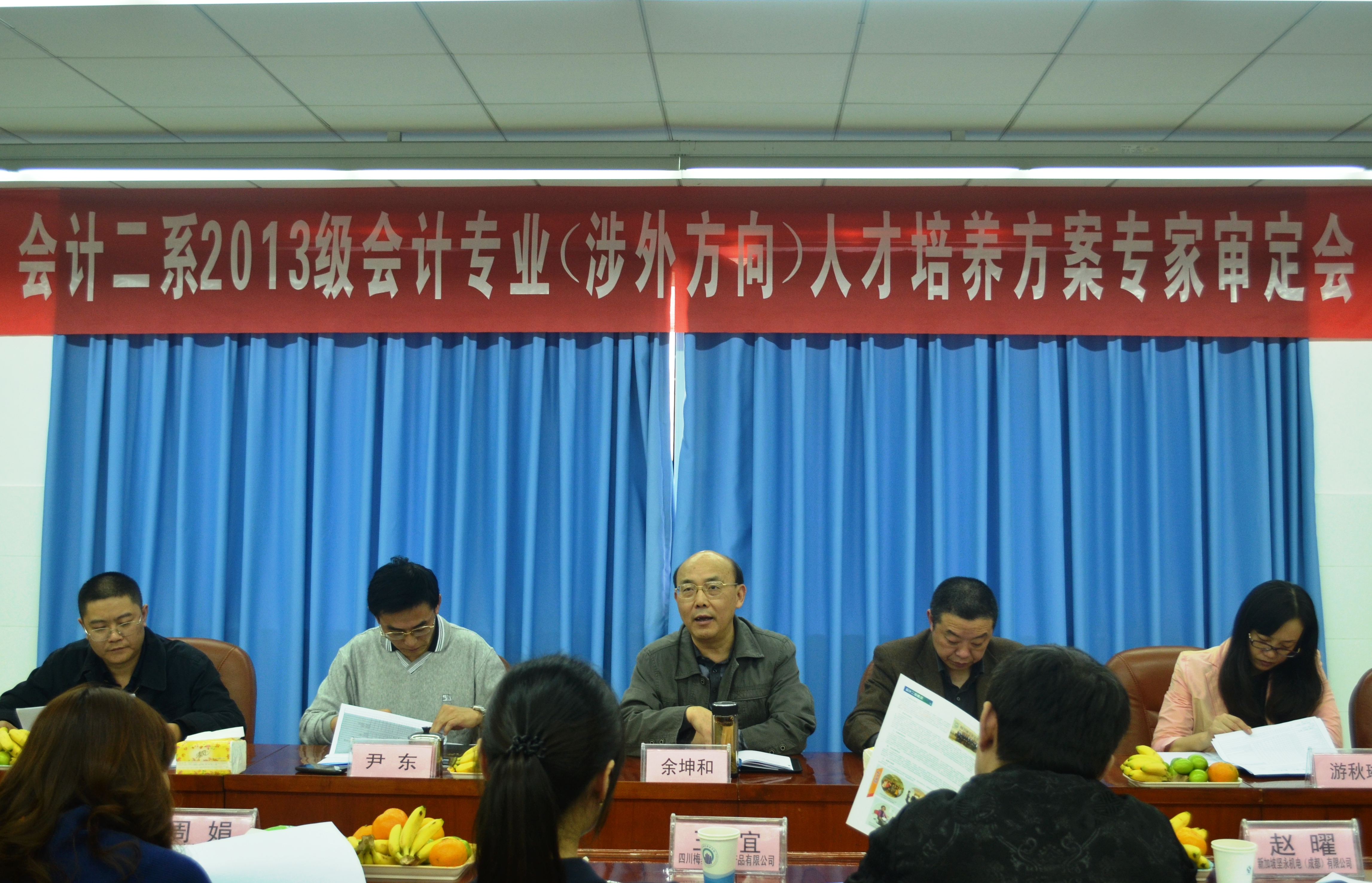 会计二系主任尹东主持会议。出席会议的专家来自各大企业的高层管理人员和相关行业协会领导,包括丹马士环球物流有限公司财务总经理,新加坡万邦集团副总经理,四川梅塞尔公司人力资源主管,华西证券四川总部人力资源经理,四川省输变电公司财务总监,新加坡坚永机电工程公司财务经理,中国高职教育研究会涉外类专业委员会副秘书长等。分管教学的副院长余坤和也出席会议,我系会计教研室全体教师参加了会议。