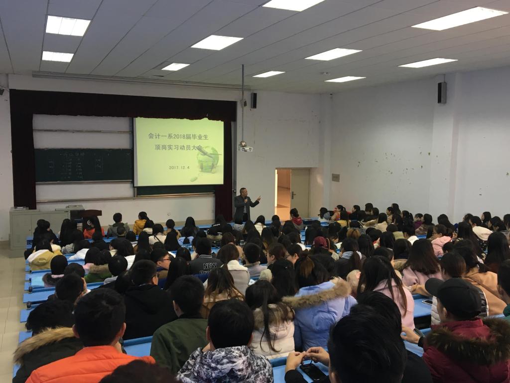 为强化实习管理,确保实习质量,促进2015级毕业生顶岗实习工作顺利开展,12月4日中午,会计系在B212、213教室举行2015级毕业生顶岗实习动员大会。会计一系主任、党总支书记杨勇,副主任陈娟、学工干事龚雪瑶、各班辅导员及毕业学生共计600余人参会。