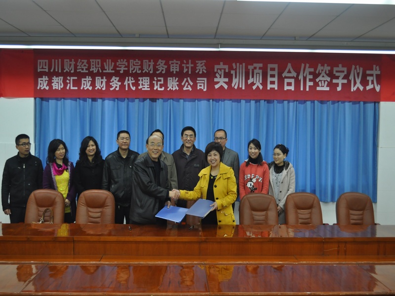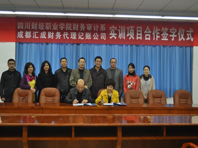 出席此次签字仪式的我院领导是余坤和副院长,财务与审计系尹东主任、系党支部刘波书记,合作单位代表是成都汇诚财务代理记账公司总经理欧蕊女士。财务与审计系部分教师也参加了此次签字仪式。