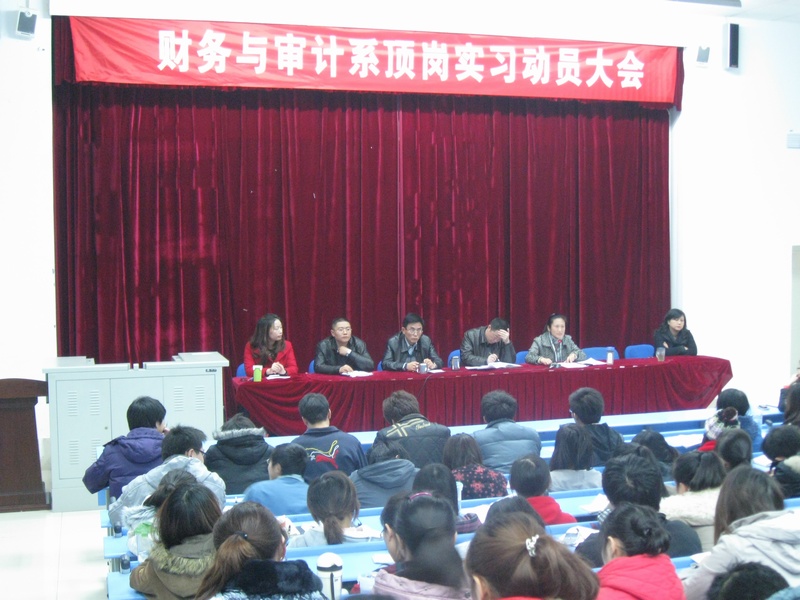 12月2日下午,我系在B213召开了08级顶岗实习动员大会。参加本次动员大会的有我院教务处处长易思飞、招生就业处张秋、我系系主任尹东、党支部书记刘波、各教研室主任及08级的辅导员们。08级即将毕业的200余名学生也全部到场。