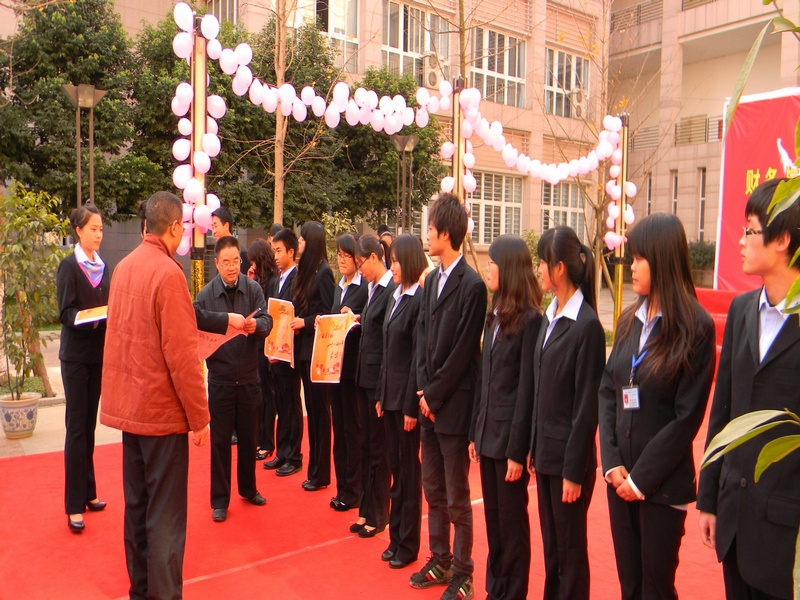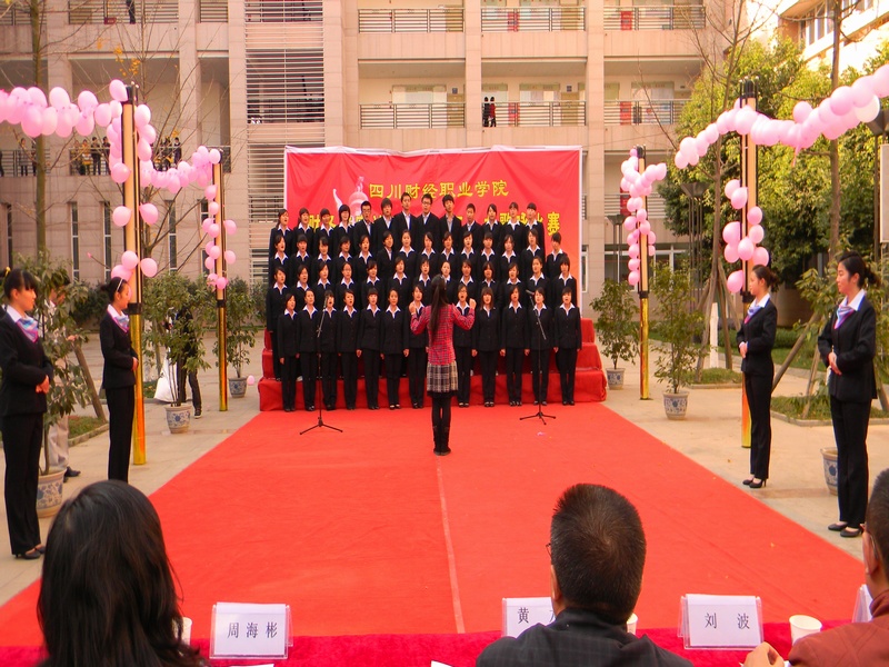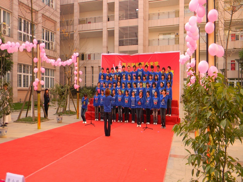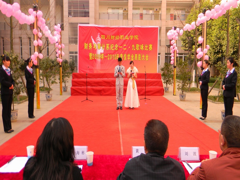 12月7日下午3点,我系在BC栋之间举办了纪念一二·九歌咏比赛暨2009-2010年度奖学金表彰大会。出席本次活动的嘉宾评委有院党委黄友书记、尹东主任、系党支部书记刘波、学生党支部书记曾小琦等领导和老师。赛前由系主席刘思旸、团总支胡武丹、各部门部长统一带队,一起为活动筹备。 这一天,阳光灿烂的日子,在我校BC栋涌出的是一股股激情活力,给寒冬带来了些许暖意。黄友书记的致词拉开了本次的比赛序幕,随后《东方之珠》的激情唱响了整个舞台,比赛过程中,各个班参赛者身穿统一服装,给活动增添了更加浓厚的气氛。一首师生合唱的《明天会更好》,现场观众报以热烈掌声,其他班也不甘落后,以《感恩的心》、《让世界充满爱》引得欢呼阵阵,最后伴随《爱的奉献》的歌声比赛告一段落。各班合唱团在舞台上尽情的展示青春的魅力,优雅的伴奏和着动听的歌声,唯美的旋律与动情的朗诵、各式各样的等切合主题的表演,无一不让人赏心悦目,歌声响彻财院的天空,为歌咏比赛拉下了完美的落幕。