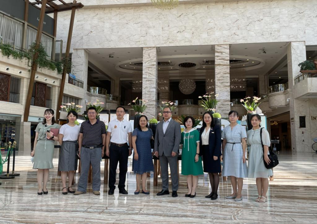 2021年7月28日上午,为进一步校企合作,探索双元育人,学校党委书记张华带队赴洲际酒店集团走访调研,副院长钟用、会计学院、工商管理学院、对外合作处陪同参加了本次走访调研活动。活动在洲际酒店旗下环球中心天堂洲际大饭店举行,洲际酒店集团西区财务总监姜山、环球中心天堂洲际大饭店财务及业务支持总监夏欢、人力资源总监林鹏热忱接待了调研组。