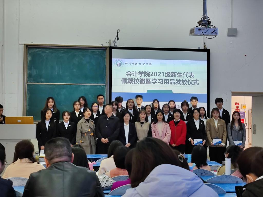 此次会计学院2021级新生代表佩戴校徽暨学习用品发放仪式圆满结束。此次仪式不仅让会计学院学生们的精神得到升华,也为会计学院老师们的教学指明了前进方向,提供了根本准则,更为会计学院的蓬勃发展注入了强大动力。