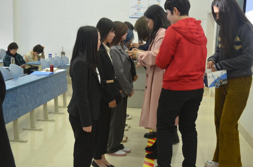 接着,与会老师分别为新生代表们佩戴校徽并发放由会计学院定制的U盘和书签。各新生代表身着校徽点缀的正装,展现出朝气蓬勃、昂扬向上的精神风貌。这一枚小小的校徽,承载着属于四川财经职业学院的学院精神,是一份荣耀,更是一份责任。