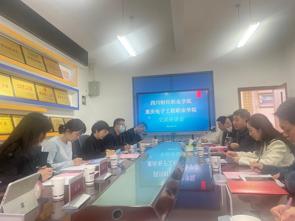 2023年3月10日上午,四川财经职业学院会计学院党总支书记、院长李代俊、四川财经职业学院对外合作处副处长朱敏率队赴重庆电子工程职业学院考察交流。此次考察李代俊院长和朱敏副处长各带一队,目的是与重庆电子工程职业学院相互交流师资队伍建设、职业技能大赛组织与激励、专业群群建设、教学改革等方面的经验。同时也向重庆电子工程职业学院学习“双高”建设的具体实施方案。