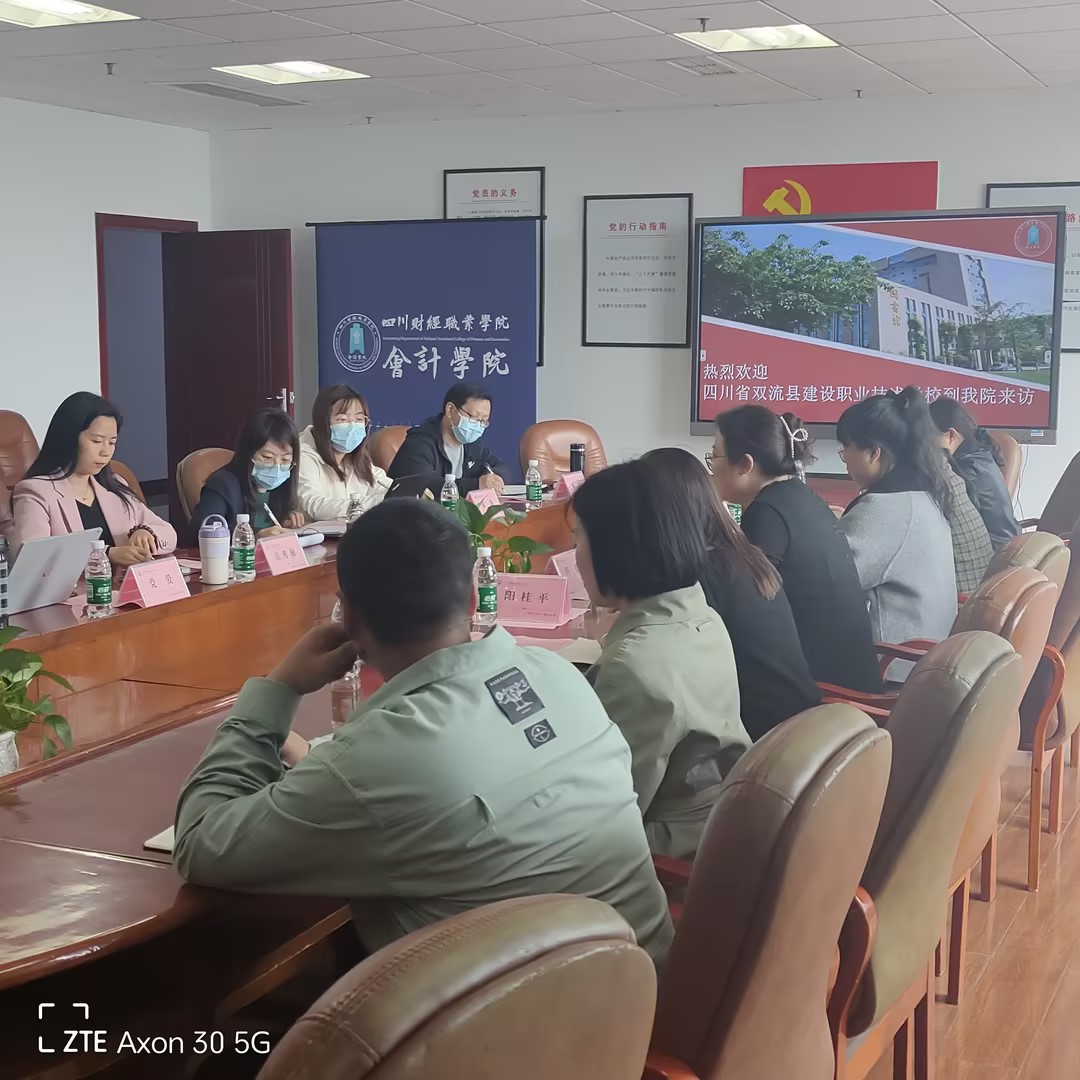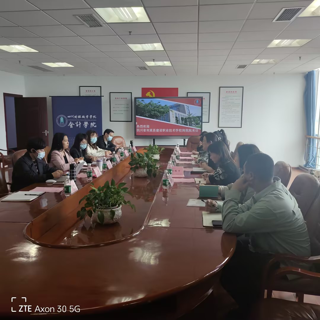 2023年3月31日下午,在明德楼613,四川省双流县建设职业技术学校教务副主任卢倩一行六人来会计学院进行交流座谈。会计学院实习实训教研室主任蒋虹、专业公共课教研室主任党爱,课程负责人吴敏老师,专任教师黎晓桦、张琳出席了会议。会议由四川财经职业学院会计学院大数据与会计专业教研室主任岳秀敏主持。