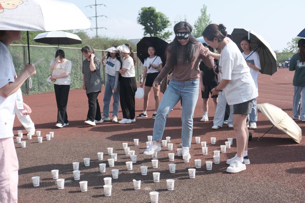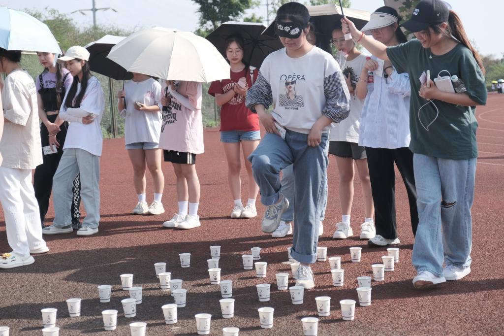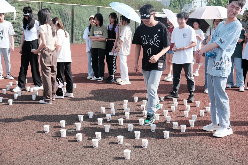 本次游园会有多个社团和协会参与,全体学生均可参与,其中会计协会也积极参与,举办了名为“蒙眼走雷区”的小游戏,游戏开始之前本协会工作人员做了充足的准备,他们将纸杯摆好静待前来参与的同学。