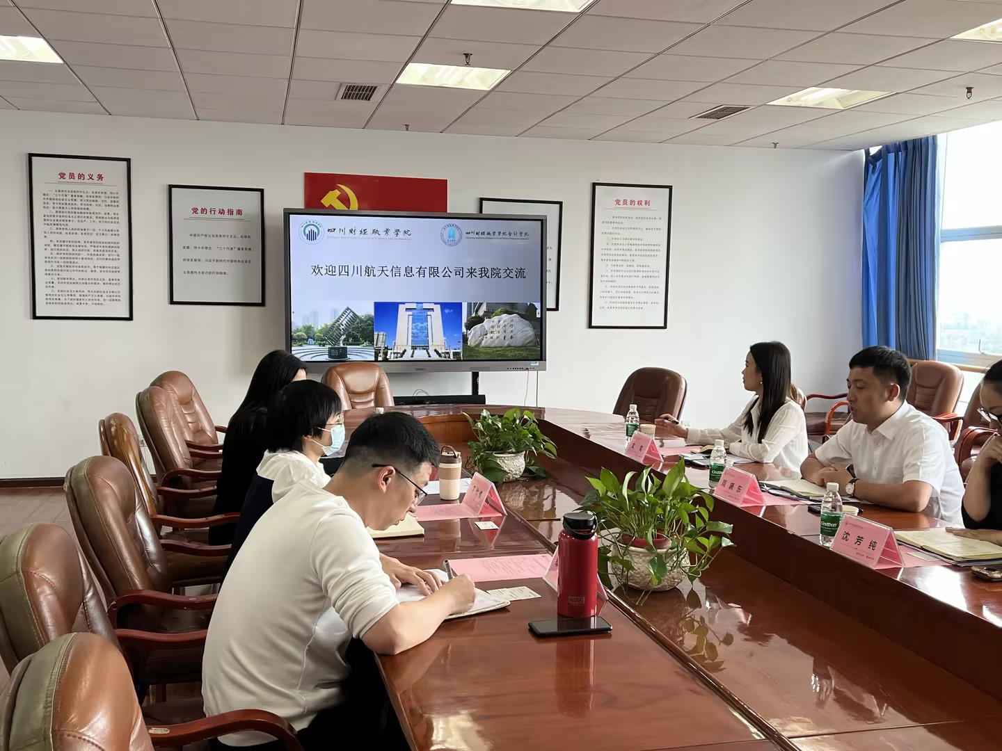 2023年5月15日,四川财经职业学院会计学院与四川航天信息有限公司在四川财经职业学院明德楼613就产教融合、人才培养进行了初步洽谈。