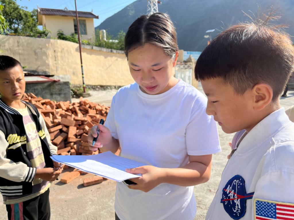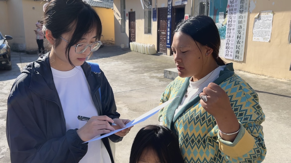 实践队赴喜德县洛发村进行普通话水平调研。实践队向村民们发放普通话水平调研问卷,并帮助村民们理解问卷内容,协助村民们共同完成调查问卷。“你通常是在什么情况下使用普通话?”实践队通过访谈的方式,来了解洛发村村民普通话的使用情况,以及学习普通话的需求,为后续活动的开展奠定基础。