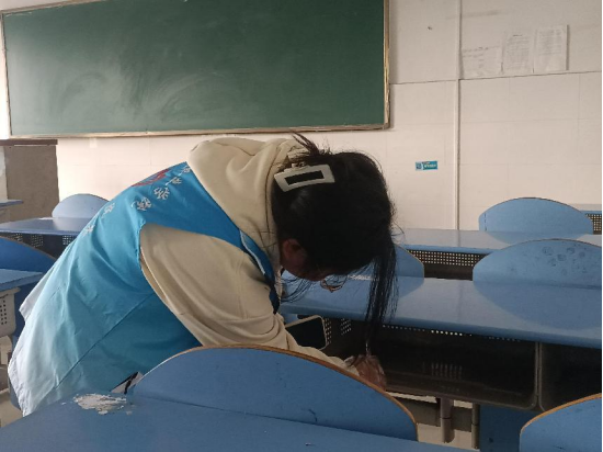 为确保本次活动的效率,志愿小组进行了协同分工、各司其职。经过两个多小时的打扫,教室焕然一新。这次活动锻炼了志愿者们的劳动技能,提升了劳动意识。让同学们从课本中走出来,用自己的双手为自己和同学们创造一个干净的、整洁的、舒服的学习环境。