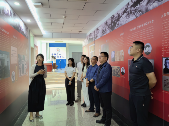 26日上午,调研团队前往山东财经大学会计学院,参观红色会计文化展,学习红色会计文化五融合育人的创新实践。得到了会计学院党委书记邵文涛、副书记郑大伟、副院长吴大新、组织员张沫等领导的热情接待。通过参观红色会计六个篇章的历史展示,大家深刻感受到了红色会计文化的厚重和创立革命基业的艰辛。领导们介绍了红色会计文化在落实立德树人根本任务,统筹推进党建、学科建设、科研、课程思政和学生实践五融合育人的具体实践,将红色会计文化创新融入廉政教育、学科与教材建设,使革命文化有机融入教育各方面,为培养新时代会计人才提供了有益借鉴。