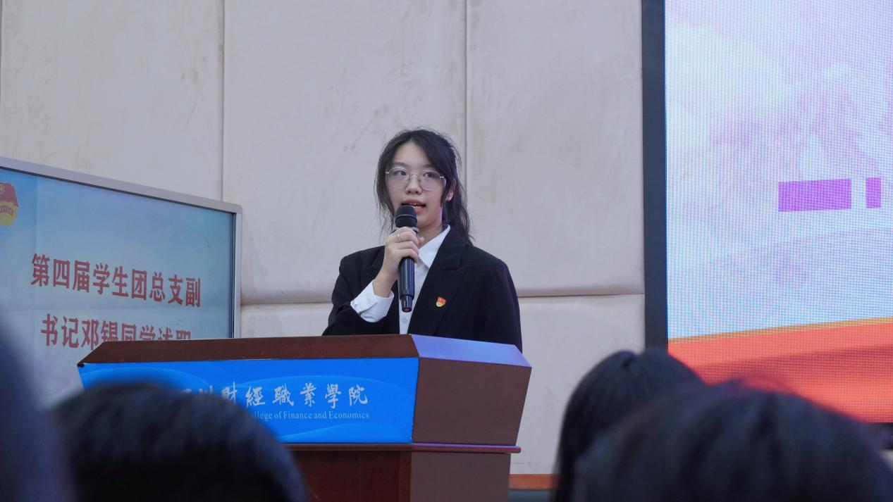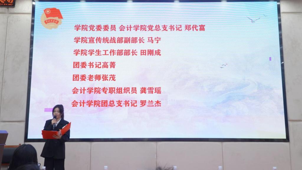 近日,四川财经职业学院会计学院第五届团学代表大会在教学楼B212圆满举行。学院党委委员、会计学院党总支书记郑代富、院团委书记高菁、会计学院专职组织员龚雪瑶、会计学院团总支书记罗兰杰、专职辅导员代表以及第五届团总支学生会竞选者和各班团员代表、学生代表参加会议。本次会议由青年志愿者协会会长肖雨婷同学主持。