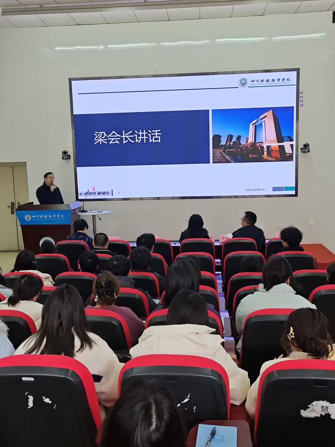 2025年3月4日,数字财务项目研发与人才孵化实训基地生产性实训项目班(第一期)开班仪式在至诚楼210教室隆重举行。学院党委委员、副院长、会计学院院长李代俊,四川省教育会计学会副会长梁勇,财务处处长邱永芳,会计学院副院长曾海帆出席,财务处副处长黄媛主持开班仪式。
