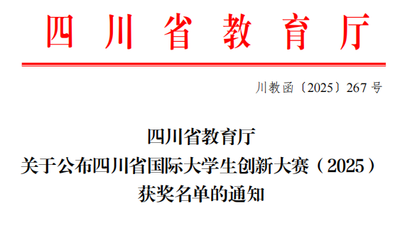 近日,在2025年“建行杯”四川省国际大学生创新大赛中,我校学子凭借扎实的专业素养、突出的创新能力与高效的团队协作,从众多参赛队伍...