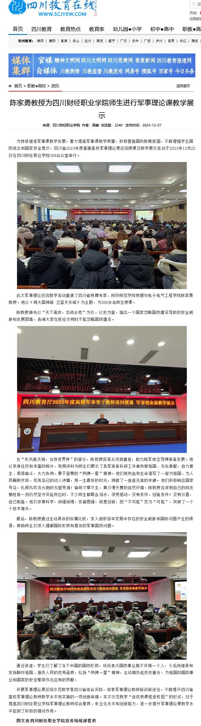 为持续推进军事课教学发展,着力提高军事课教学质量,积极营造国防教育氛围,不断增强学生国防...